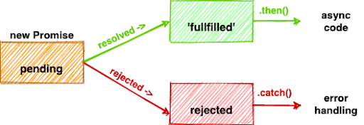 The promise takes in two different arguments: resolve and reject. Resolve is called to complete/resolve the promise and data is returned to the function executed in the then block. Reject is called to throw an error and .catch() catches the rejects. Since then and catch are properties on Promise object, it allows dot-chaining.
